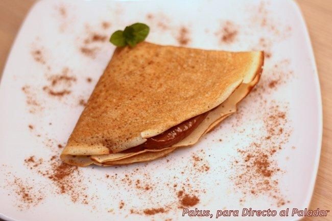 - The crepes are very versatile and can be filled and served as we like, I fill them with nocilla, so we put a couple of globs of nocilla cream and fold the crêpe in half, and then again in half.