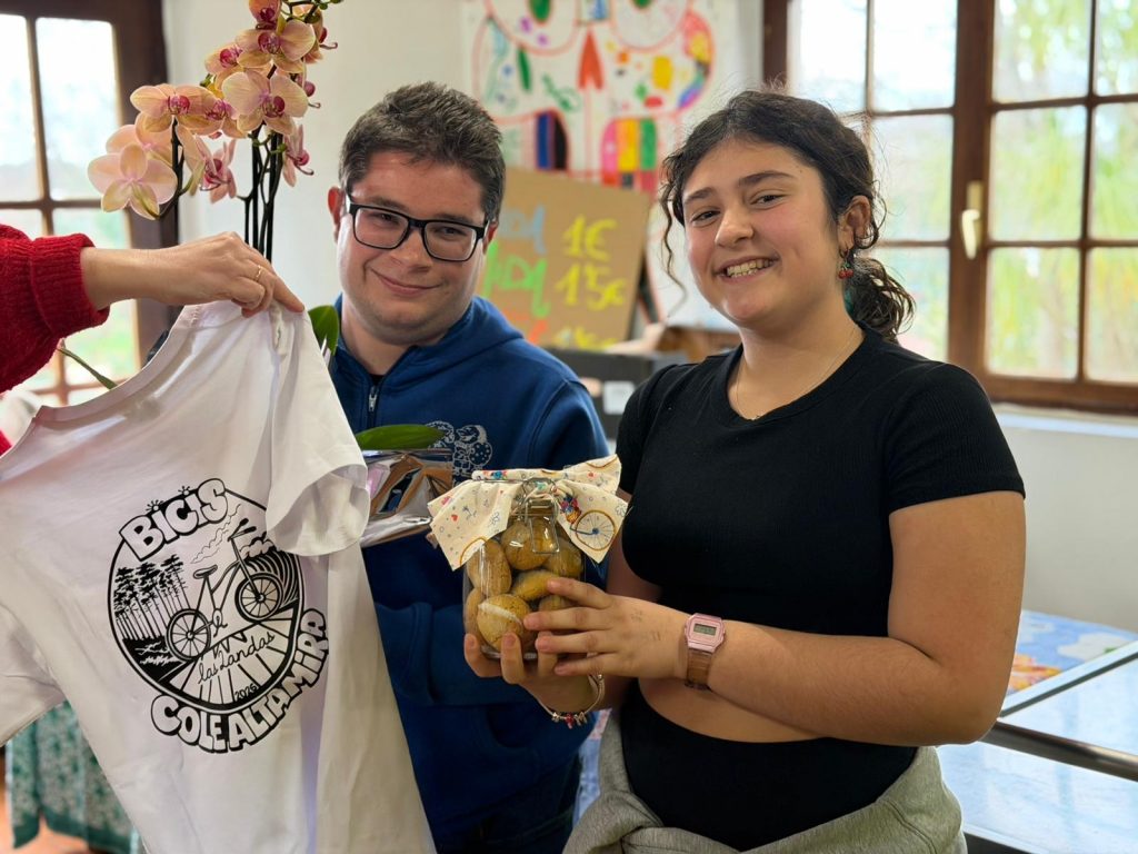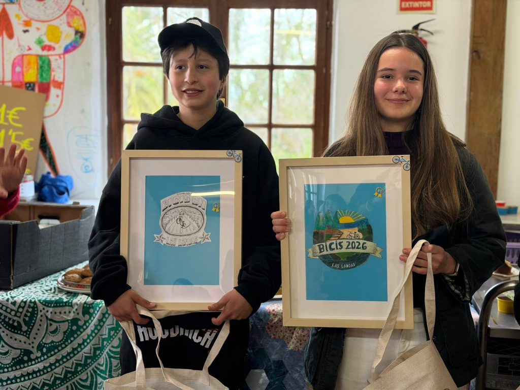 - a los chicos y chicas que habían participado en la convocatoria para crear el logo del viaje de bicis por sus obras artísticas