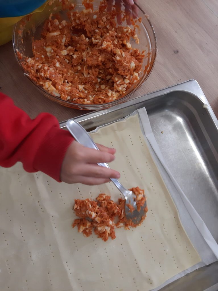 Durante estas conversaciones, Mario nos contó que cuando va al bosque con su familia suelen llevar hornazo, una receta típica de Salamanca parecida a la empanada. A partir de ahí , investigamos cómo se elabora y descubrimos que lleva ingredientes como lomo adobado, chorizo y jamón ibérico.
