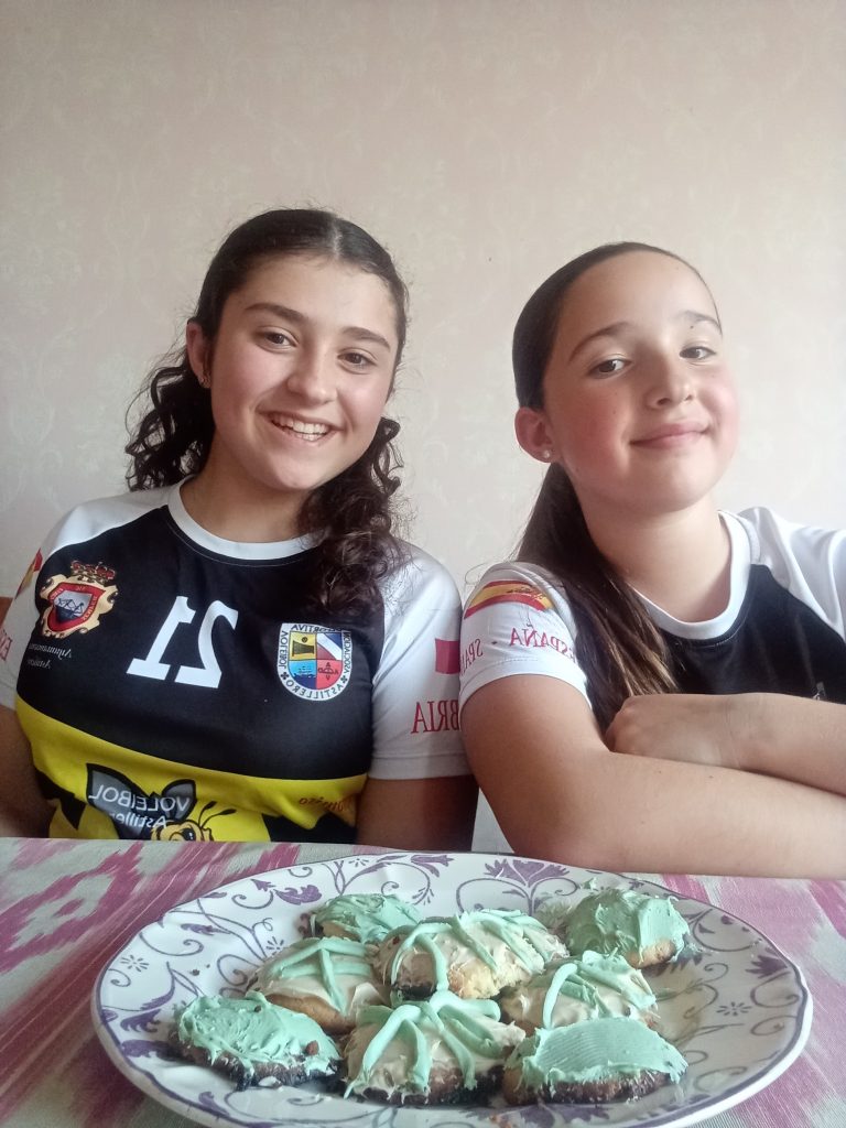 He elegido esta receta porque me gusta divertirme con mi amiga Paula jugando al voleibol. Esta receta consiste en unas galletas de mantequilla con nocilla blanca y verde.