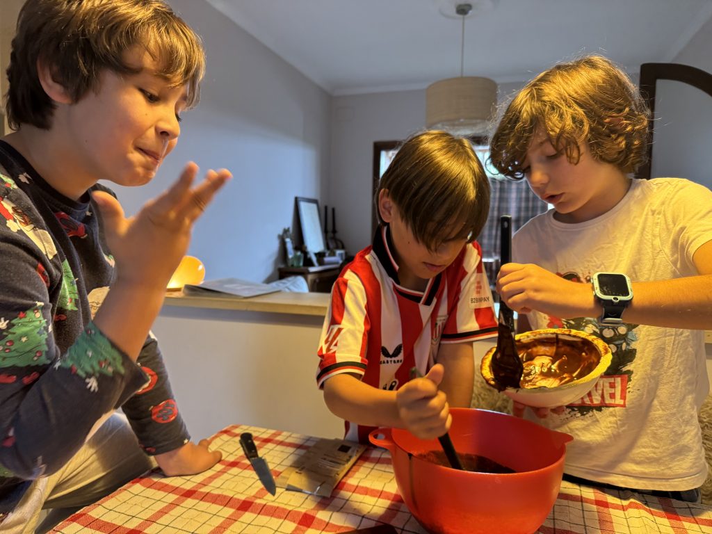 • 120–130 g azúcar (menos porque hay chocolate con leche)