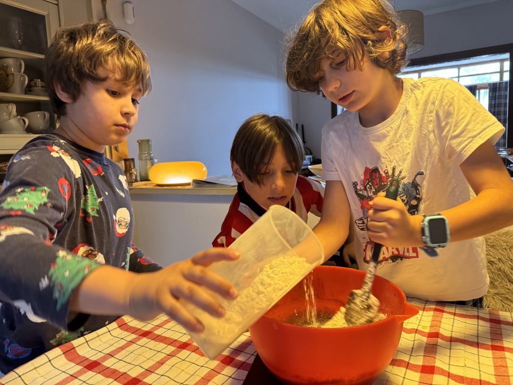 4. Añadir harina+ sal. No batir de más (clave para que quede jugoso).